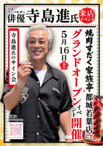 お知らせ 【新店オープン記念サイン会】焼肉すだく都城本店・焼肉すだく家族亭都城若葉店に俳優 寺島進が来る! 2026年5月15日(金)、5月16日(土)に焼肉すだくの公 Read More » 4月 23, 2026
